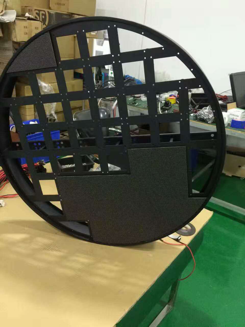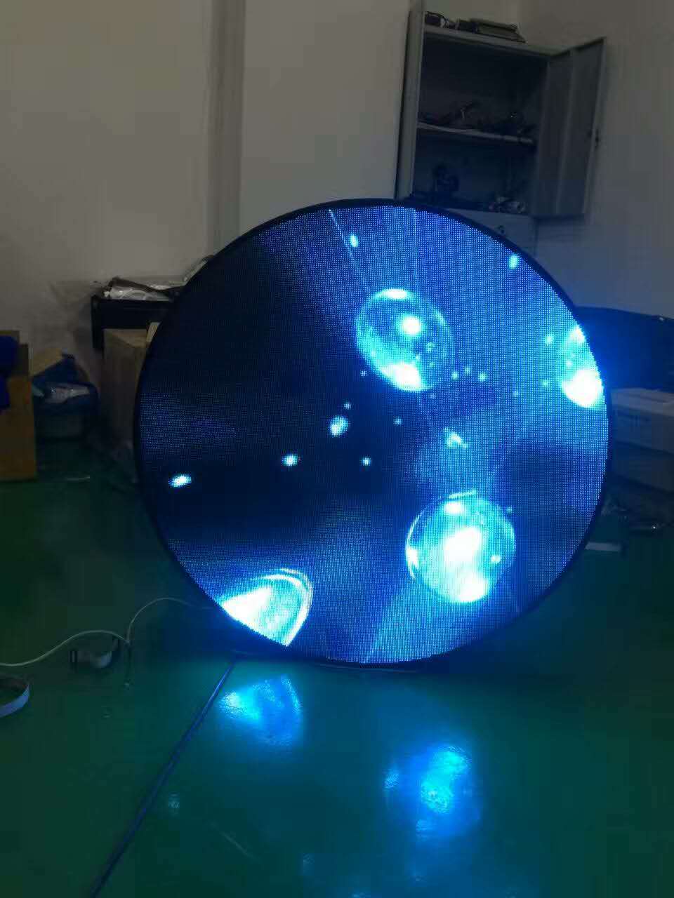 近日,我公司和广州某展览馆进行了磋商,要求要一个内嵌式的LED圆形LED显示屏,我公司在接到消息后第一时间了方案。该LED圆形显示屏属于异形LED显示屏的一种,我们采取中间用LED常规模组,LED圆形屏周边开了一款异形小模组,可以让LED圆形显示屏的包边做到最小于0.1米,拜托传统用常规模组包边过大的尴尬,让LED圆形显示屏更加小巧精致。