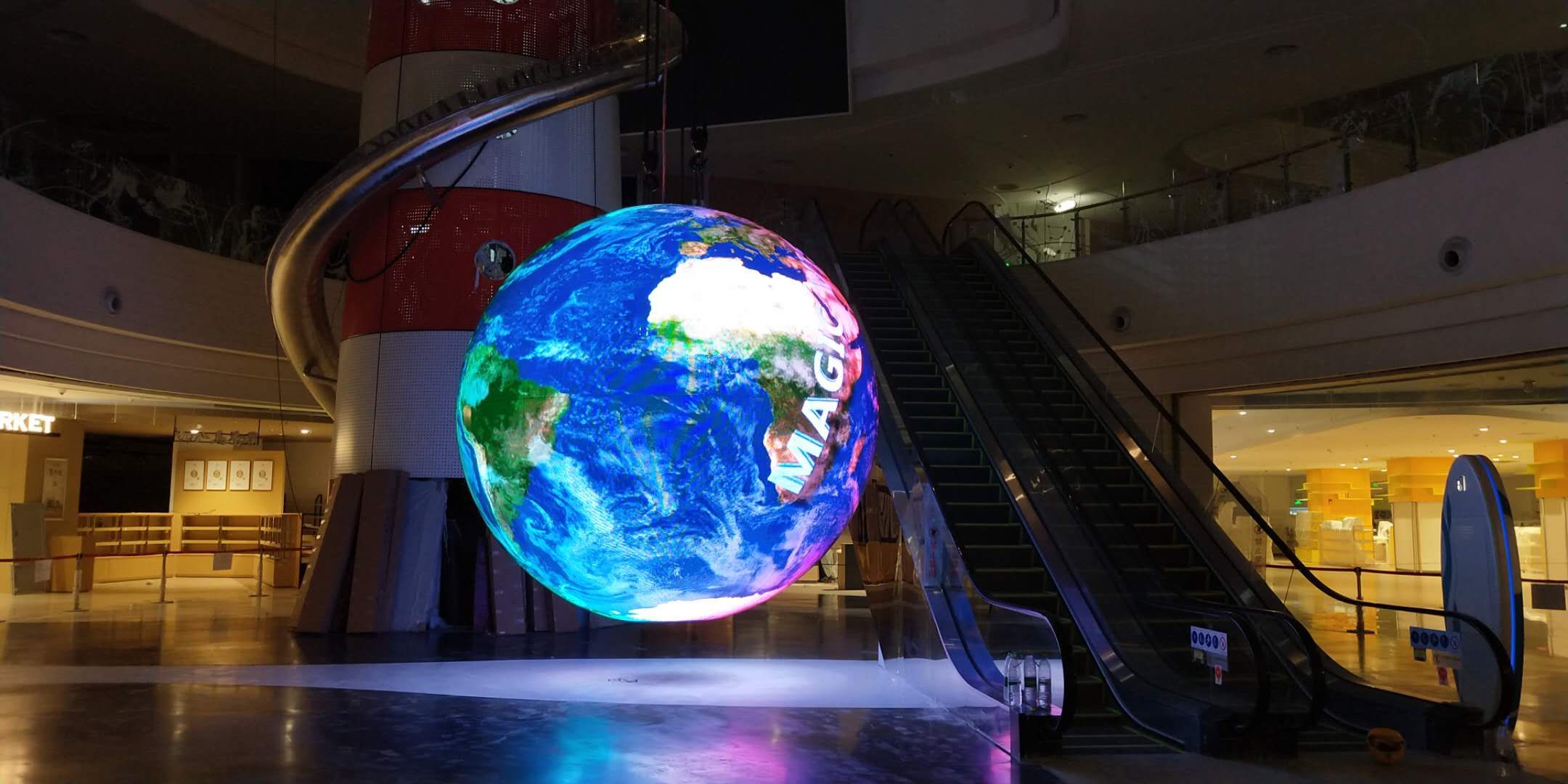 汉腾达科技的室内LED球形屏可实现无缝拼接,采用梯形PCB线路板设计。该球形LED电子屏支持均匀抽点技术,显示画面完美不失真。LED球形电子屏支持异步U盘和电脑同步两种播放方式。室内LED球形屏采用铝制结构散热解决方案。LED球形屏安装方便灵活,支持落地安装和吊装以及嵌入式安装等。